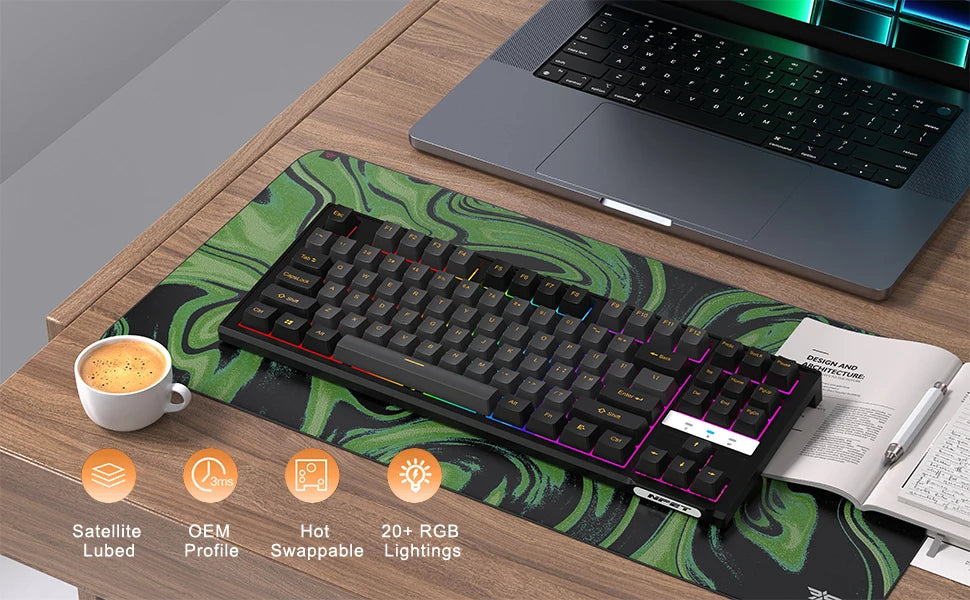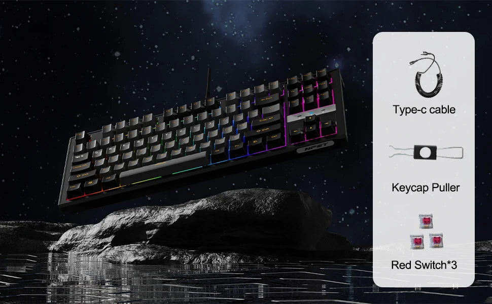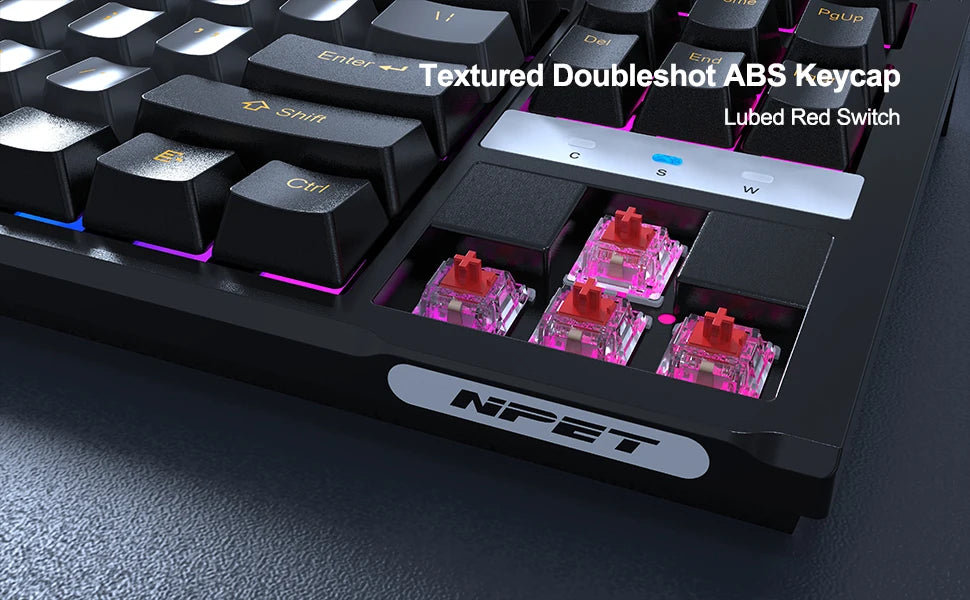 NPET 87 Keys RGB Mechanical Keyboard, Wired 20+ Backlit Modes, Ergonomic Hot Swappable Design, Suitable For Gaming And Office