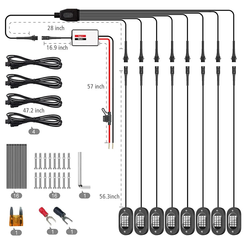 RGB Rock Lights for Cars & Trucks – Bluetooth Control, Waterproof Off-Road LED Underglow Kit